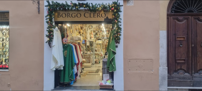 - Vendita di articoli religiosi: Borgo Clero offre una vasta gamma di prodotti religiosi, come paramenti, talari, piviali, veli omerali, clergyman, ostensori, reliquiari, icone, croci, pastorali, calici, pissidi, statue, turiboli, navette, gong, campanelli, ampolline, vasi, oli, tabernacoli, rosari, candelieri e lumi.